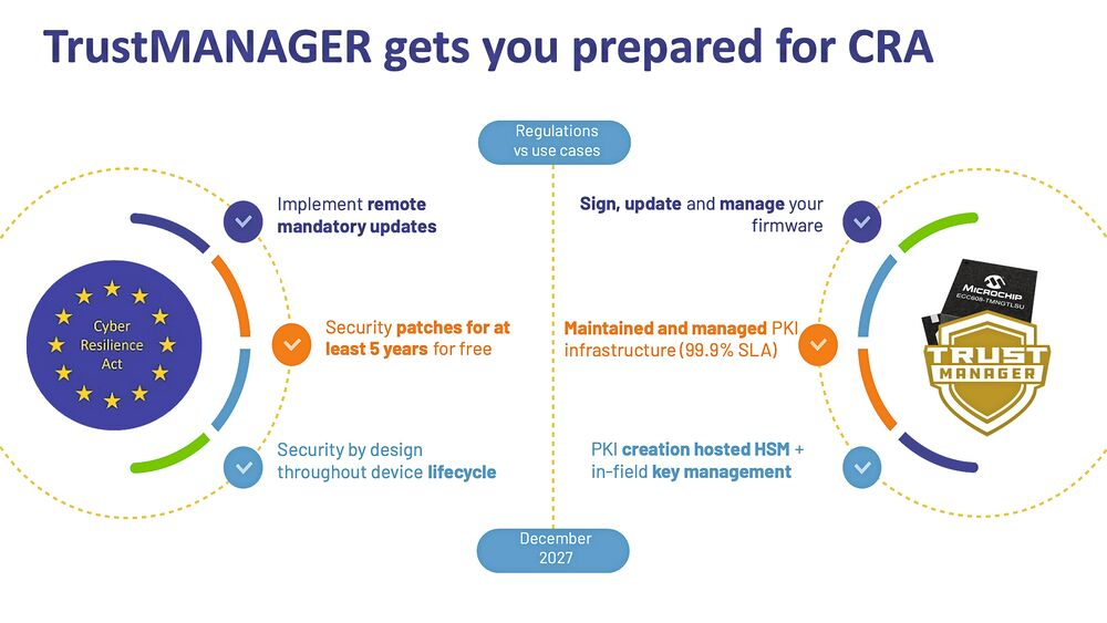 Cybersecurity regulations such as the Cyber Resilience Act are changing the IoT landscape. It is becoming all the more important for device manufacturers to implement functioning cryptographic measures from the outset and maintain them throughout the entire product lifecycle. An authentication chip such as the TrustMANAGER ECC608 can help here.